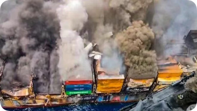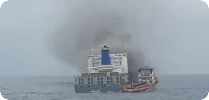该船于6月9日被弃船,大火至今仍在4号货舱区域燃烧。甲板区域和货舱已坍塌,倒下的集装箱使救援情况更为复杂,气流持续助长火势,监测显示4号货舱内温度持续升高。坍塌区域正在持续进行边界冷却,额外的灭火材料于6月30日运抵该船。